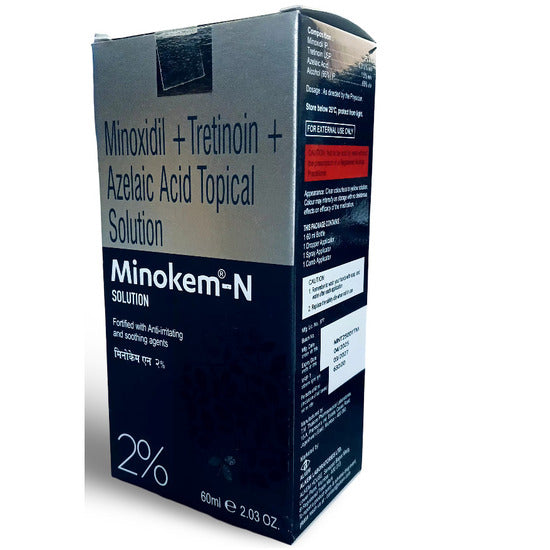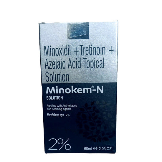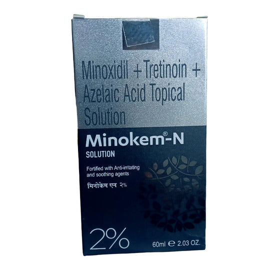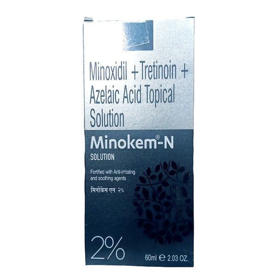 Powered by a clinically proven combination of Minoxidil, Azelaic Acid, and Tretinoin, Minokem-N works at multiple levels — boosting blood circulation to hair follicles, reducing hormone-related hair loss factors, and supporting healthy scalp renewal. Its lightweight, easy-to-apply formula absorbs efficiently into the scalp, making it ideal for daily hair loss management under medical guidance.